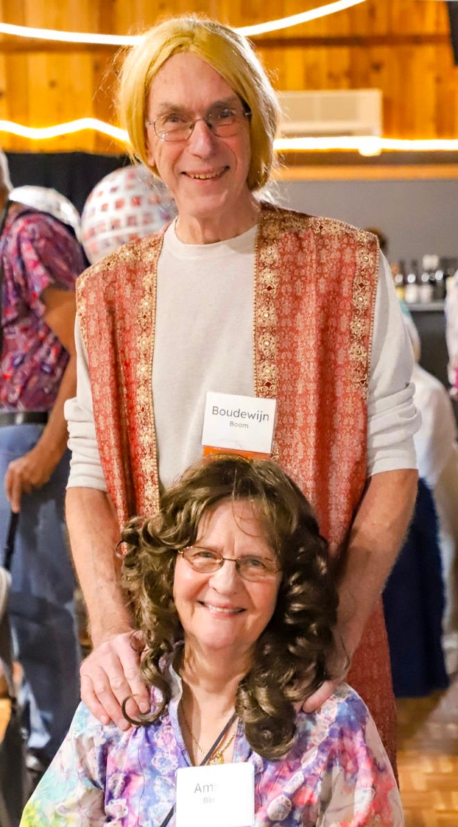 Funkadelic Fantasy Gala Fund-raiser—1970s on display $135 a plate, we’re invited for free batik, bell bottoms, wigs everywhere bald men sporting blond ponytails others with hair dyed blue, fake peace sign tattoos When bidding starts, my eyes as wide as a 5-year-old’s surprise good grief I can’t afford a starting bid, fret over needing new shoes Auctioneer’s patter bidding paddles raised here, there everywhere— item after item bringing in $3,500, $5,000, more Money sprouts on some trees but not on mine That’s just fine